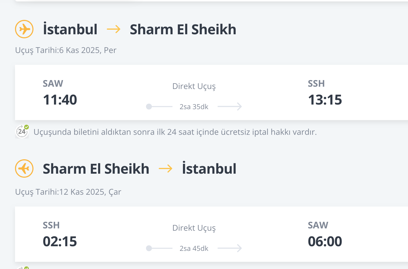 7.Day : Hotel check-out at 00:15 amand transfer the airport. Flight with  Pegasus at 03:15  Sharm El Sheikh to  İstanbul